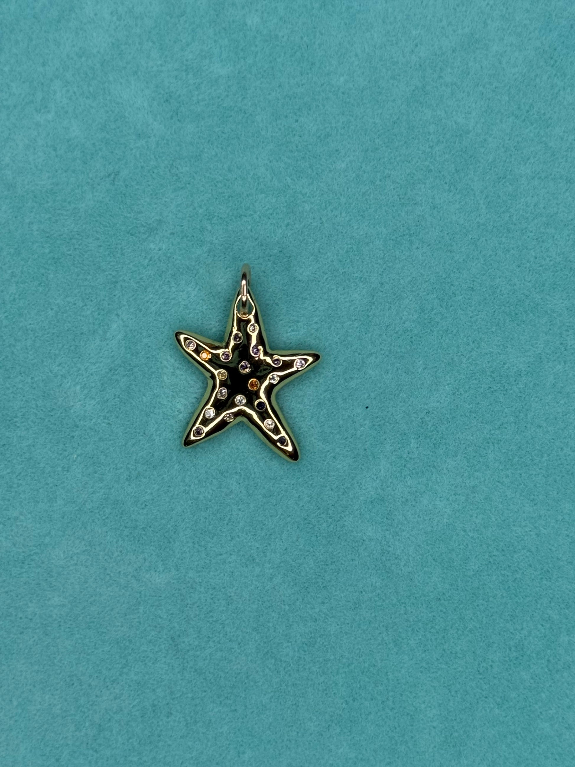 Shine with this 18mm star charm adorned with a sprinkle of tiny, colorful CZ gems set in 24K gold-filled brass, adding a fun and sparkling pop.