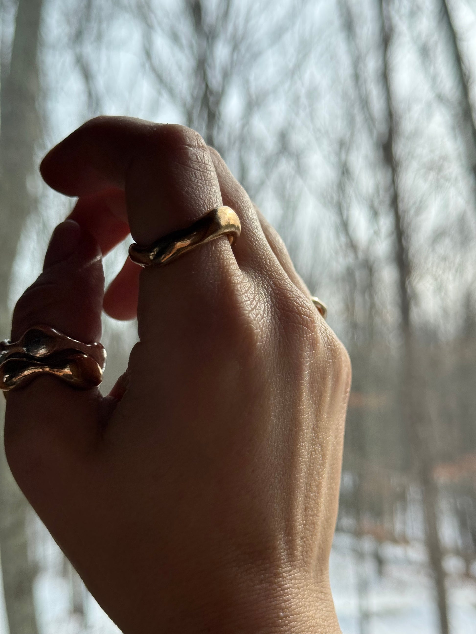 With its fluid, continuous lines and substantial weight, this ring is designed to be a grounding presence on your hand. Whether you choose the heirloom brilliance of Fine Silver or the ancient, sun-kissed warmth of Bronze, the Fluere is a solid artifact for the woman who moves through life with intention.