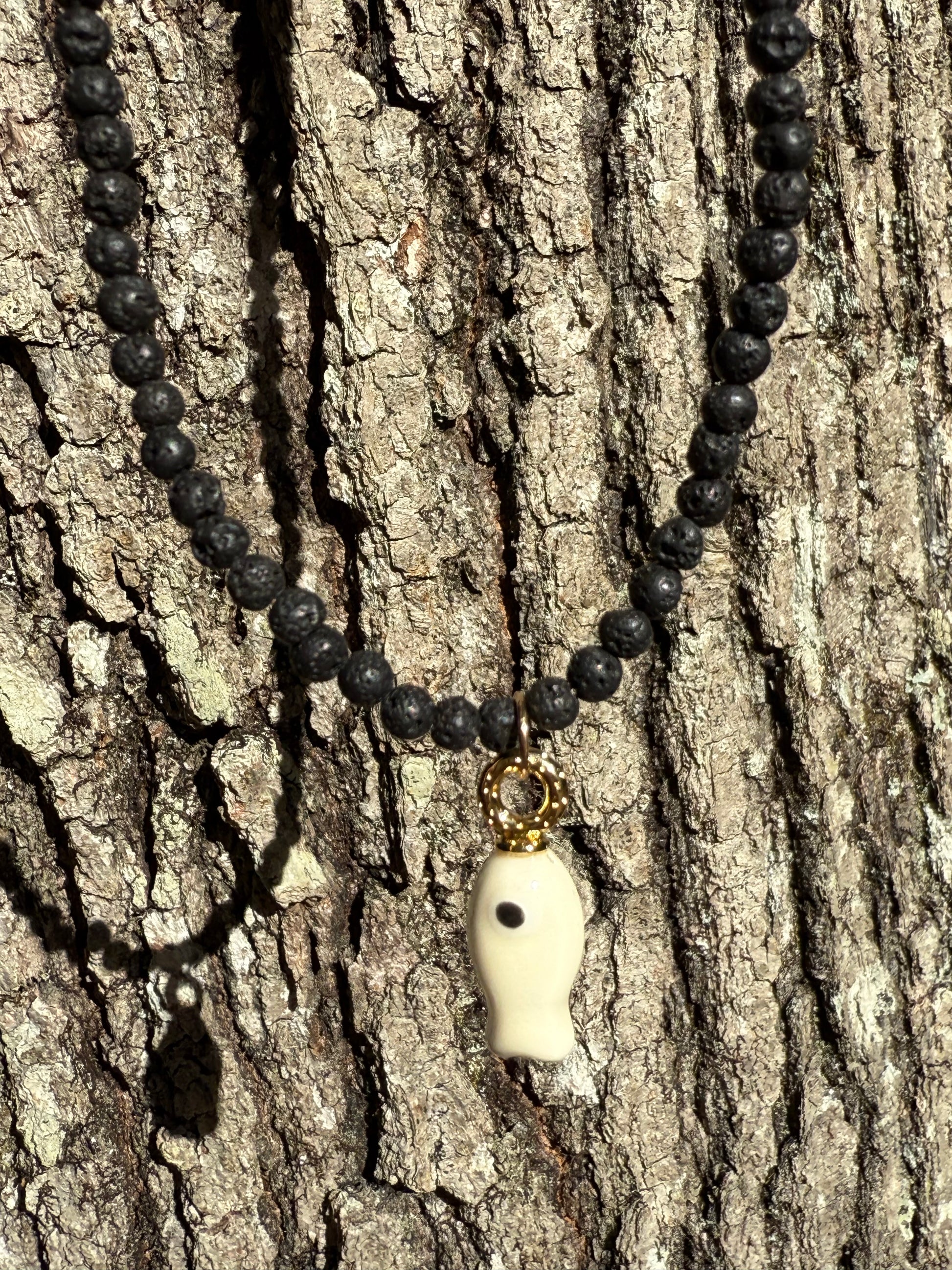 This necklace comes in two unique special editions: one featuring black lava beads and the other with bright, juicy blue Apatite beads. These versions are priced differently compared to the regular styles.